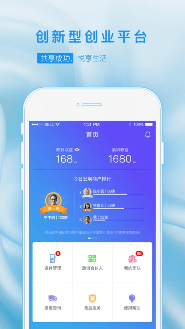 乐创业是一款针对创业者的工具。它能将合伙人邀请、商户进件管理以及实时分润查询整合在一起。对于个体创业者或小微商户来说,乐创业可以提供数字化创业支持。