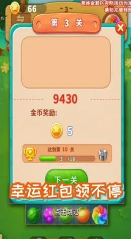 一起连连看红包版是融合经典消除与现金激励的休闲益智游戏。画风清新,操作灵敏,关卡设计丰富,消除方式多样。通关领红包可提现,还有果园互动元素。采用积分制,水果方块原创手绘,能生成战绩报告,是款有趣又能赚钱的游戏。