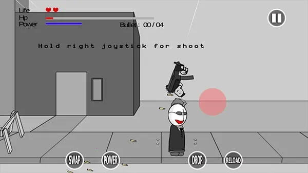 游戏特色满满,独特黑白画风,视觉效果简洁深邃。关卡设计独特,难度各异,从易到难逐步提升,满足不同玩家挑战需求。而且,它有故事推进与竞技对抗两种模式,可通过完成任务解锁更多内容。操作也不难,左侧屏幕控制角色移动,右侧挥动机械手攻击,还能随时暂停。快来试试疯狂机械手,感受这与众不同的射击体验,用你的策略和技巧突破重重关卡,享受热血战斗吧!