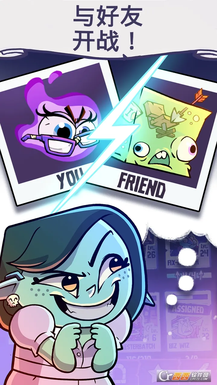 4. 美术风格独特:采用卡通暗黑幽默风格,怪物Q萌但台词邪恶,英雄死亡有搞笑动画。美术色彩明亮与题材黑暗形成反差萌,全年龄向。