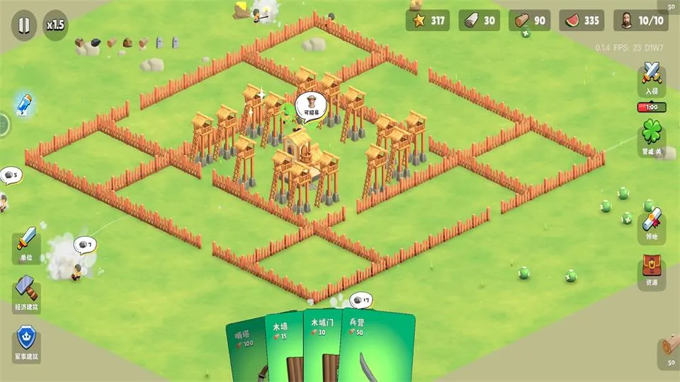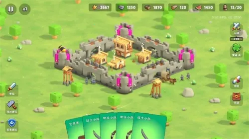 2. 巧妙融合塔防:修筑城墙,招募兵种,抵御敌人连续进攻,守护家园安全。