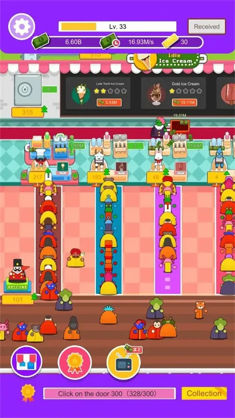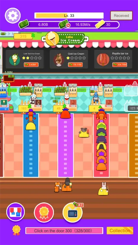 客人有了,接下来就是如何提升工作效率了,在这里点击地毯能够为更多的客人送上冰淇淋,这也是加速店铺营业效率最为直观的表现。
