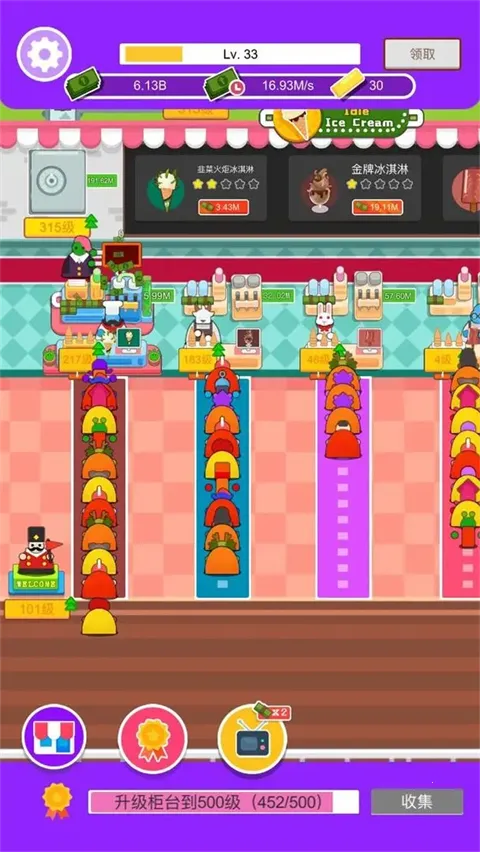 3. 升级店铺可提升收益,进而解锁更多家具和冰淇淋配方,打造独具特色的冰淇淋店。