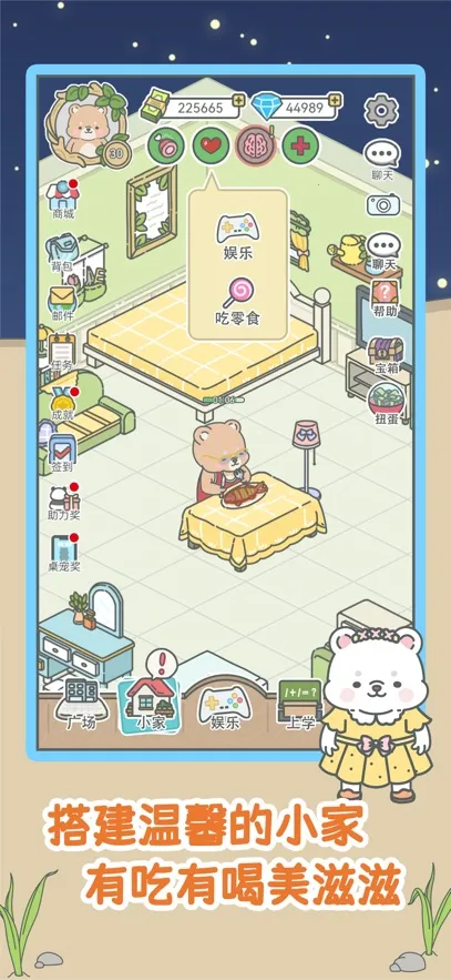 自选样貌服装,能为宠物选择性别、不同部位,还能穿上喜欢的样子,还有不断更新的皮肤和家居设施,让宠物和家更好看。