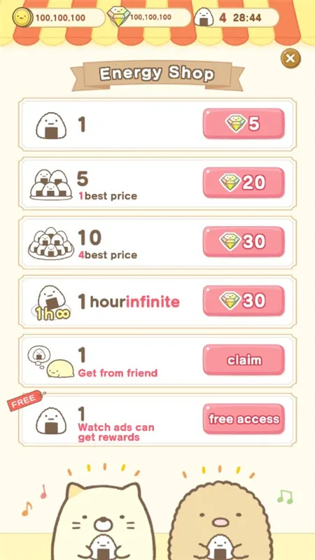 游戏目标多样,不只是单纯消除方块,还有消除特定颜色方块、让特殊方块掉落盘子、消除特定位置草丛、砸掉猫罐头旁饭盒,甚至挑战大型BOSS等。游戏中还有多个可爱主角,如白熊、炸猪排、猫等,它们有不同技能,消除方块积累能量可使技能进化,后期还能收集主角们的时装和旅途照片,还有新活动更新。而且游戏不限制时间,用移动次数限制,还有贴心提示和换色设定,让人玩起来轻松又愉快。