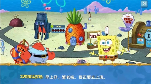 丰富剧情:拥有独家有趣的剧情设定,经典人物蟹老板、派大星、章鱼哥、珊迪等依次登场与你互动,沉浸体验比奇堡生活。
