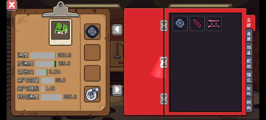 2. 可自由选择零部件对赛车进行改装,使其适应各种复杂路况,充分发挥创意实现多方面强化,也能直接选不同改造方案。