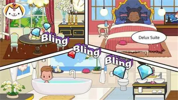 它有诸多特色场景,像主题房间、海滩小岛、观光区、度假区大厅等。玩法自由度超高,进入游戏能自由选择场景探索。比如在酒店,东西可触碰,食物能吃,还能增加人员。而且每月更新,不断推出新地点。游戏画面卡通可爱,玩法简单,小孩子点点就能布置。你能装修公寓,和朋友互动,解锁剧情,感受自由冒险与挑战,沉浸在这个充满惊喜的小镇世界里,是款非常值得一玩的游戏。