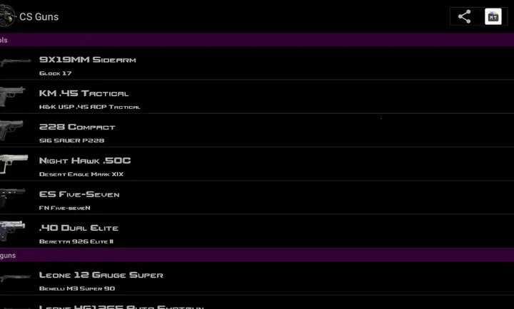 能查看 CS 内枪支道具,方便玩家了解武器详情。