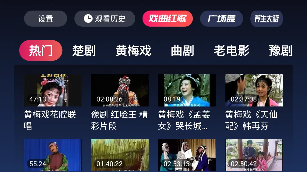海量资源:涵盖丰富的梨园戏曲、海量网络热播短剧、相声评书小品二人转、经典老电影等,剧种多样,包含豫剧、京剧、黄梅戏、秦腔等,还有众多名家经典内容,满足不同用户喜好。