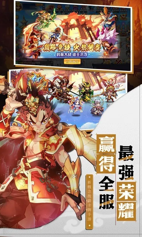 其画风清新Q版卡通,人物立绘精美,像朱天菩萨火神祝融、斗战神佛孙悟空等角色令人眼前一亮。游戏玩法丰富多样,不仅有传统的卡牌策略对战,还摒弃了繁琐操作。骑马射箭、培养佳丽、册封嫔妃等趣味玩法,让人乐在其中。战斗中,知名CV携手爆笑剧情,搭配强烈打击感与上百种微操技能,策略战斗十分精彩。MM后援团、国战、世界资源争夺等特色玩法,满足了不同玩家的期待。