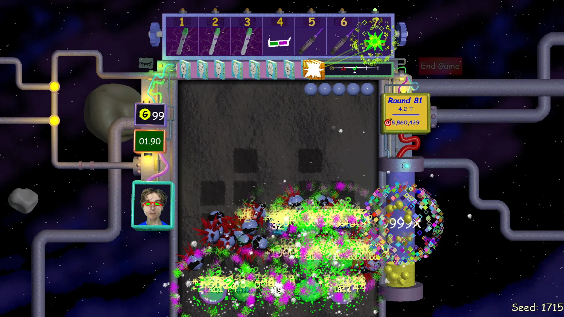 欢迎来到纳比的数字工厂,在类似弹珠游戏的Roguelike玩法中,操控纳比沿钉板向下累积数字。身为员工要完成生产指标,其关乎时空结构,失误会致太阳爆炸,可借助超50种道具提升产量,享受数字越滚越大的快乐。