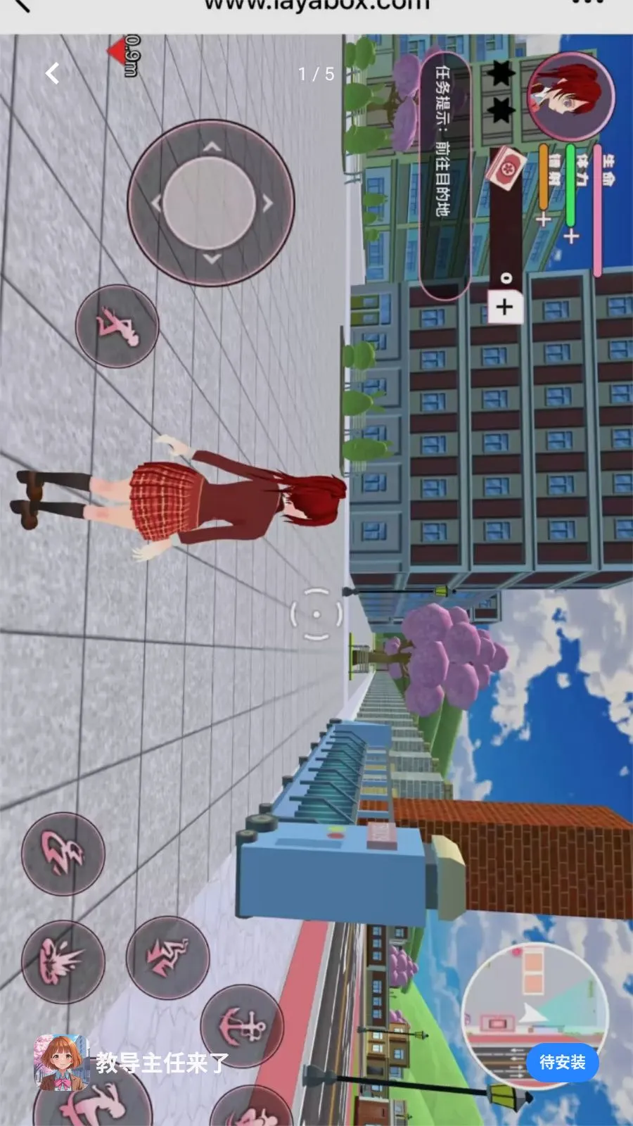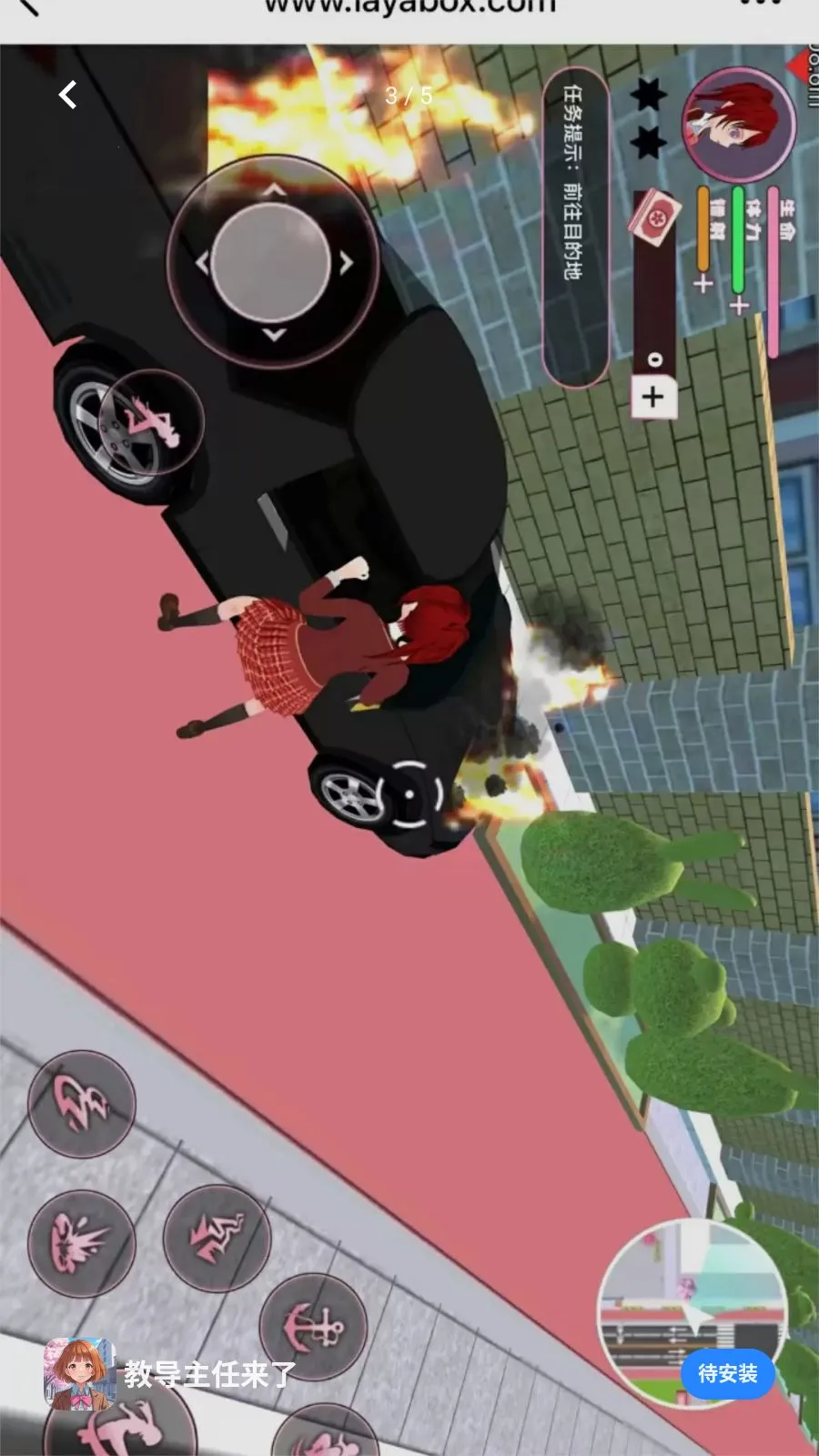 教导主任来了(二次元探索游戏)是一款色彩明快的二次元卡通风手游。玩家扮演红发少女,身着红格裙在城市街道自由探索,用虚拟摇杆控制移动,完成摧毁汽车等任务,界面有能力数值,融合探索与轻度动作,体验轻松有目标。