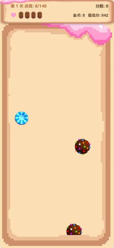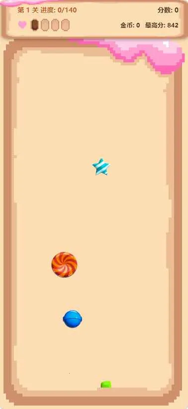 糖果碎碎乐是一款切割游戏,玩家在游戏区域划刀切割飞出的糖果,切普通糖果得分,切到炸弹扣生命,可用护盾抵消。达成目标分数通关获金币,可买道具。支持多种糖果,记录最高分与通关数,适合碎片时间反复玩。