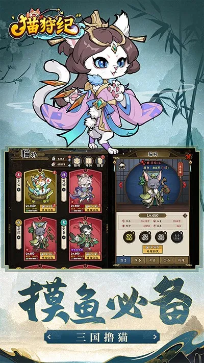 4、策略搭配:魏蜀吴群四大阵营喵将可自由搭配,不同技能和属性的喵将,带来无限策略可能,排兵布阵、属性搭配实现克制,体验策略对决魅力 。