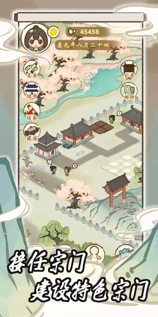 1、古风背景:以精美的古风世界为背景,带来独特的视觉享受,在古风修仙世界中开启宗门经营之旅。