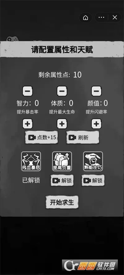 《孤城求生2025》是文字题材末日生存游戏。融合多种玩法,开局选天赋与属性点,应对危机获奖励、采集资源养成。关卡有隐藏道具,可助力挑战,还有丰富剧情与高自由度操作,等你来冒险 。