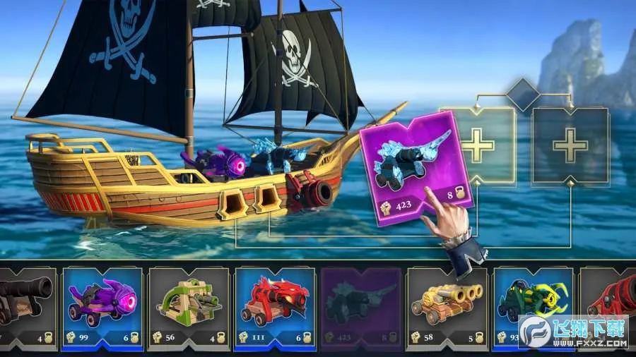 <2>丰富的船只选择:数十种类型的船只,从双桅帆船到战舰,还能选择丰富的升级设备,打造独特海盗船。