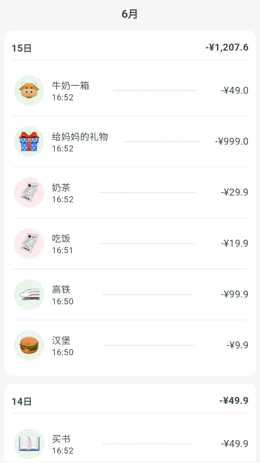 2、统计便捷:记录的数据会自动统计整理,可直观了解每月消费总额,方便对比每月消费变化。