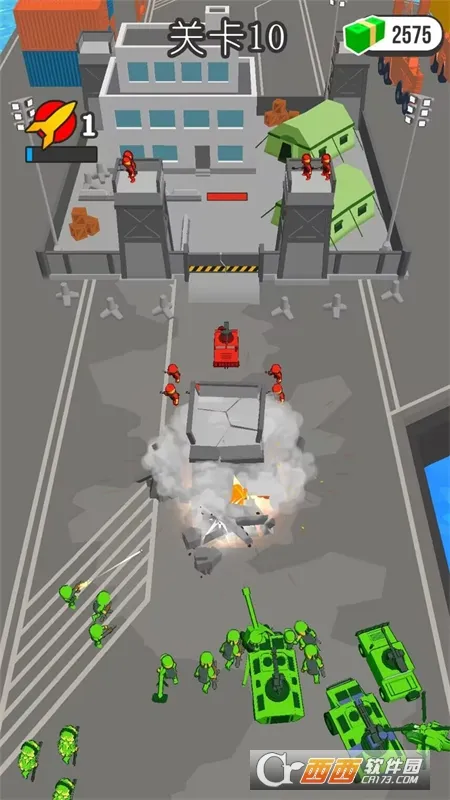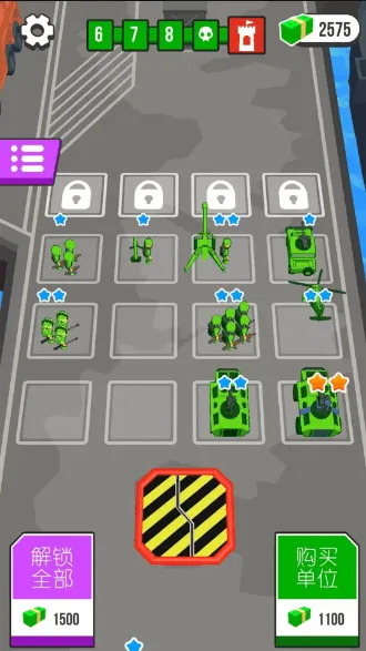 1、合成玩法丰富:能将地图中的武器、载具拖拽合成,制造出海陆空各种武器,如步兵坦克、直升机等,升级武器威力。