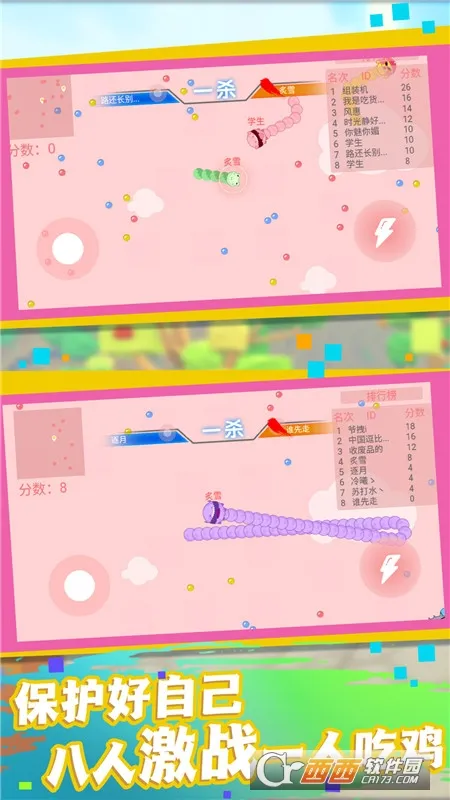 2、多人竞技:支持最多200人同场乱斗,玩家各自操控蛇身争夺资源,赛场竞争热烈,充满紧张刺激的竞技感。