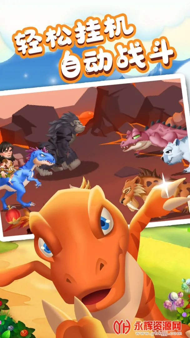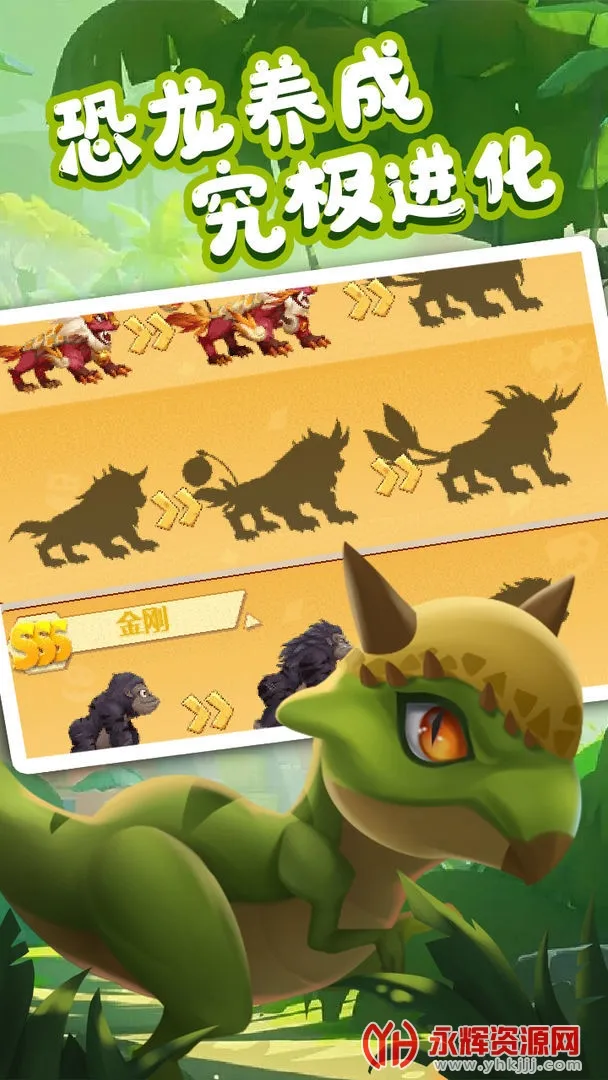 3、放置合成:放置挂机式战斗解放双手,挂机获取资源合成口粮强化培养猛兽,它们会进化,还能退还进化资源,不用担心资源浪费。
