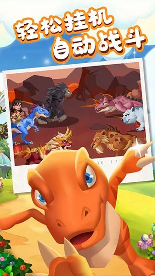 1、Q弹画风:游戏采用Q版画风,恐龙形象QQ弹弹,大大的眼睛、小小的嘴,反差激萌,比如长脖子龙打架时甩动脖子,呆萌可爱。