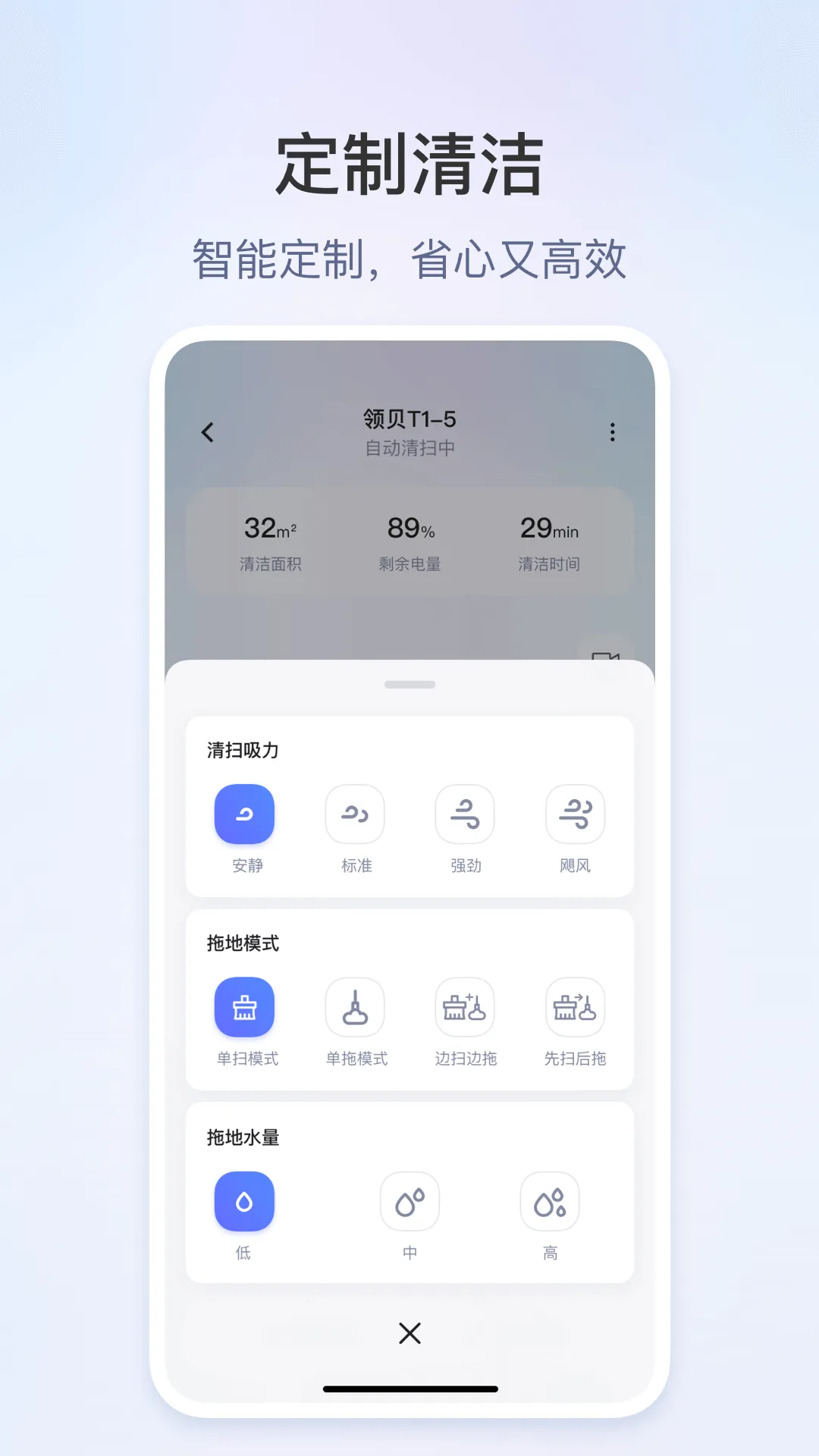 2 操控便捷随心:用户通过手机即可随时随地对机器人进行控制,操作简单。不管是启动、调整模式还是设置计划,都能轻松完成,还支持远程操控,外出也能掌控机器人工作。