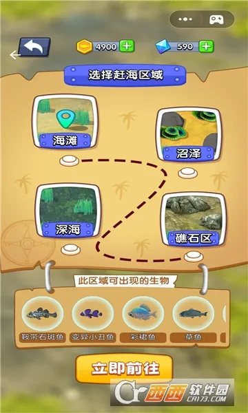 4 多区域选择:有各种各样的赶海区域可供选择,像深海、沼泽等,满足不同探索需求。