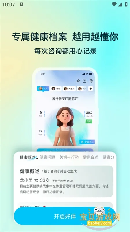 3、个性化服务:基于健康档案生成专属方案,通过记忆功能提供定制化建议,还能选择喜欢的AI角色,关注情感需求。