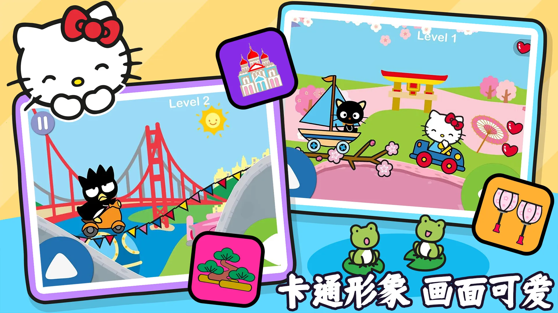 凯蒂猫趣味世界是一款好玩的休闲冒险游戏。游戏画风萌系气息浓厚,众多可爱服装首饰供玩家选择,能为角色定制个性造型。玩法丰富,有11个三丽鸥角色肩负探索使命,可收集爱心,每个角色都有独特故事与载具。这里自由度超高,能按自己想法行动,主支线任务推动情节发展。游戏关卡和场景多样,还有轻缓背景音乐,上手不难。玩家能驾驶可爱小汽车在多彩场景自由探索、旅游拍照,完成任务还能获丰富奖励 。
