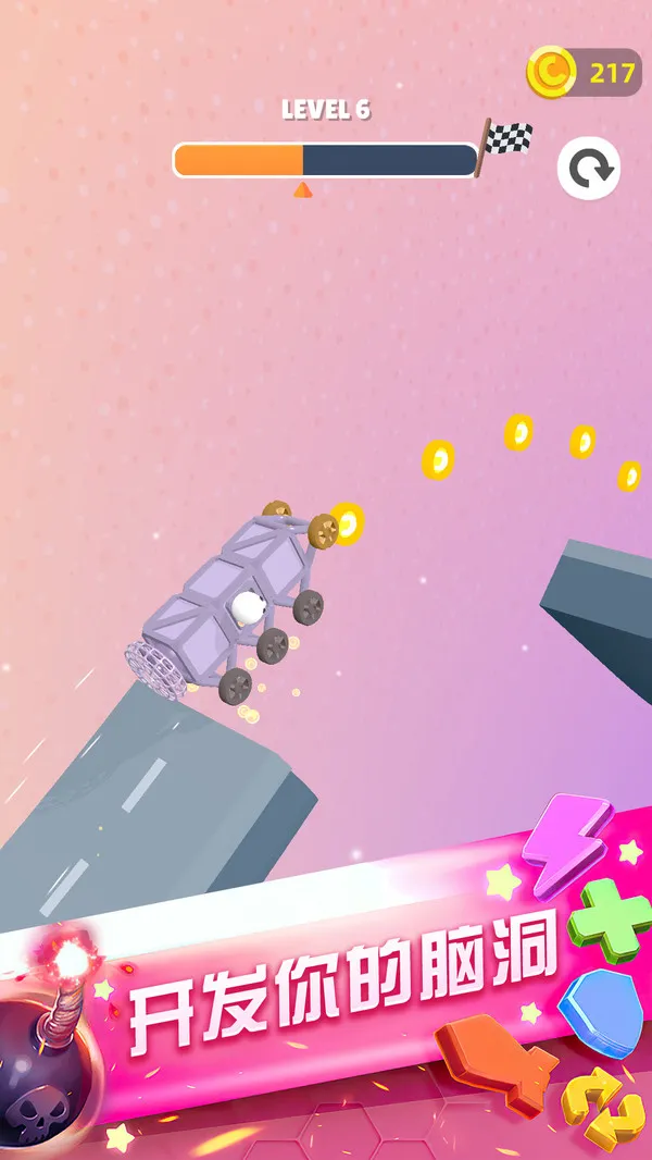 转轮过山车是一款休闲好玩的赛车酷跑类手游。玩家开局能自制汽车,有丰富关卡可选。游戏中,控制车速极为关键,车速过快易失控致游戏失败。金币可带来额外得分与奖励,要尽量收集。还有多样道具,如加速器等助力通关。关卡众多,场景逼真且各有独特设计与挑战,从山脉到海滩等不同场景带来多样视觉感受。操作简单,点击屏幕就能驾驶。无论是初级还是高级玩家,都能在这找到适合自己的关卡,体验刺激又解压的过山车之旅 。