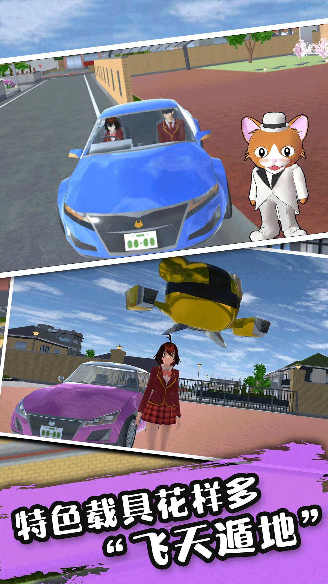 2、特色载具多样:游戏内有各类特色载具,可自由驾驶,在校园场景中畅行,增添游玩乐趣。