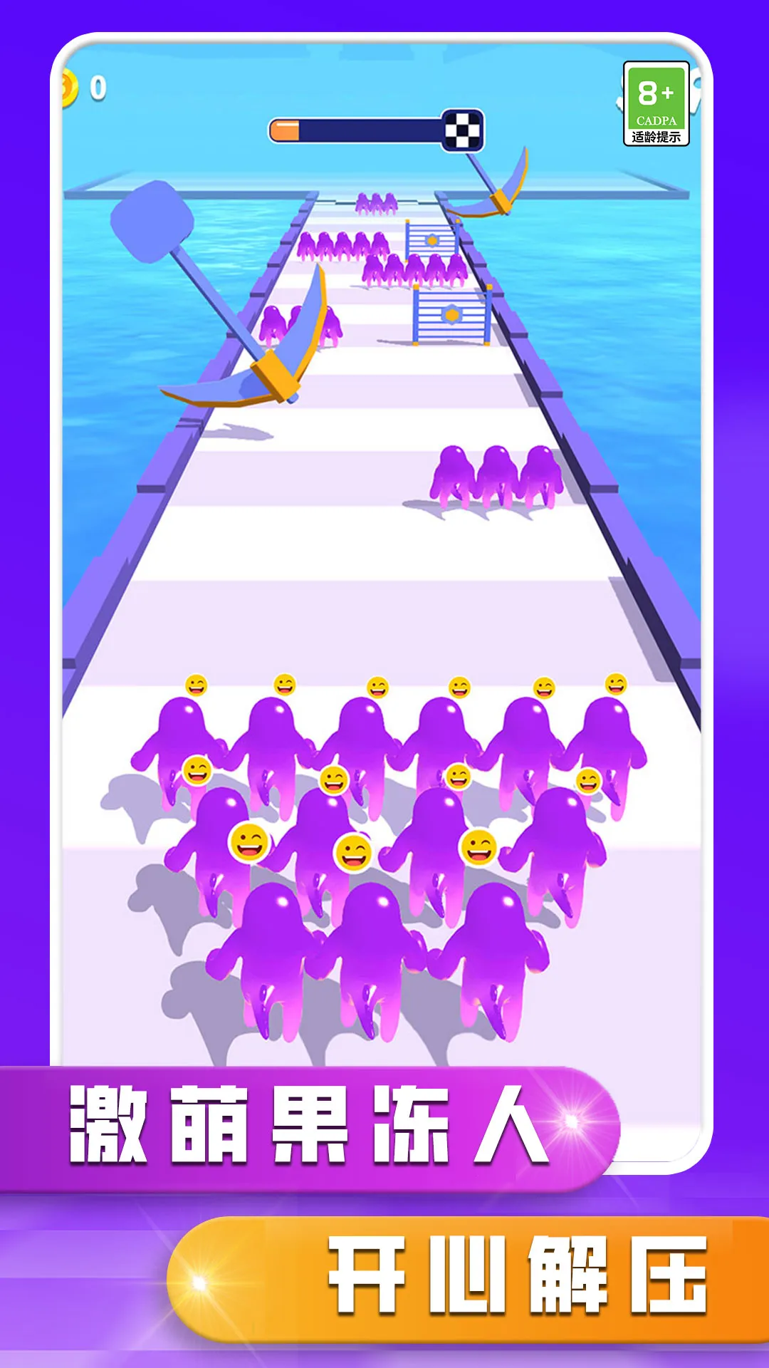 开心来闯关是全新跑酷闯关手游,画面为可爱卡通风。主角是Q萌果冻小人,玩家操控其奔跑躲避陷阱、集结军团对战邪恶果冻人救国王。玩法多样,难度升级,还有特殊角色、武器等,新版首发。