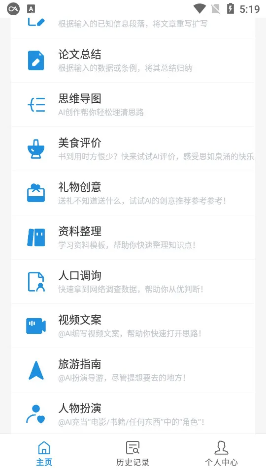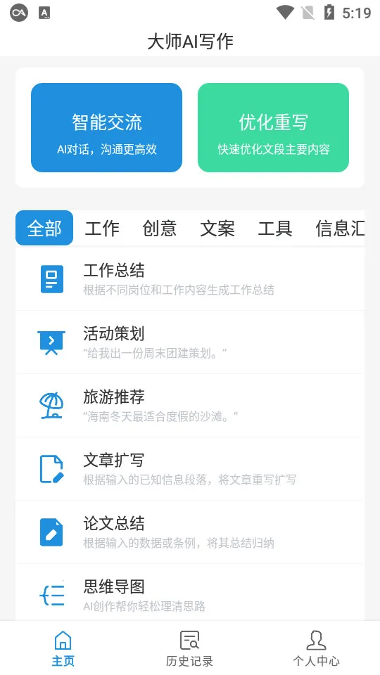 大师AI写作2025官方正版是一款智能写作及百科问答应用,提供文章生成、创意激发、学术辅助和职业文档处理等功能。它操作简便,用户只需输入主题或想法,即可快速生成高质量原创内容,且完全免费无广告,致力于全面提升用户的写作效率与体验。