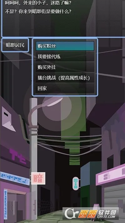 《电竞之路2025》是一款模拟经营类文字游戏。游戏采用卡通风格,以文字玩法为核心。在游戏里,玩家助力角色成长,体验多样玩法,目标是成为电竞选手。玩家可选择倾向性影响初始数值和属性成长,有多种难度可选。游戏玩法丰富,前期能家中单排上分、直播,也能去网吧参赛赢取奖励;还可在暗影街SOLO挑战 ,俱乐部达到一定条件后有训练、排位赛等玩法。游戏真实还原现实电竞比赛,带来紧张刺激体验,值得一玩 。
