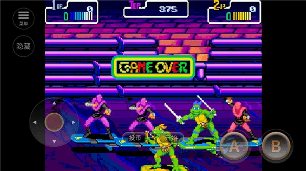 《忍者神龟2时空武士》是一款经典街机游戏。游戏以忍者神龟为主题,玩家可操控拉斐尔、米开朗基罗等神龟角色展开冒险。游戏场景丰富多样,有城市街道、神秘洞穴等。战斗玩法精彩,玩家能使用各种拳脚功夫和武器技能,与敌人展开激烈对抗。其招式丰富,打击感十足,还设有连招系统,玩家合理操作可打出华丽连击。游戏中还会出现各种强大的BOSS,挑战玩家的操作技巧和策略能力,带给玩家紧张刺激的游戏体验。