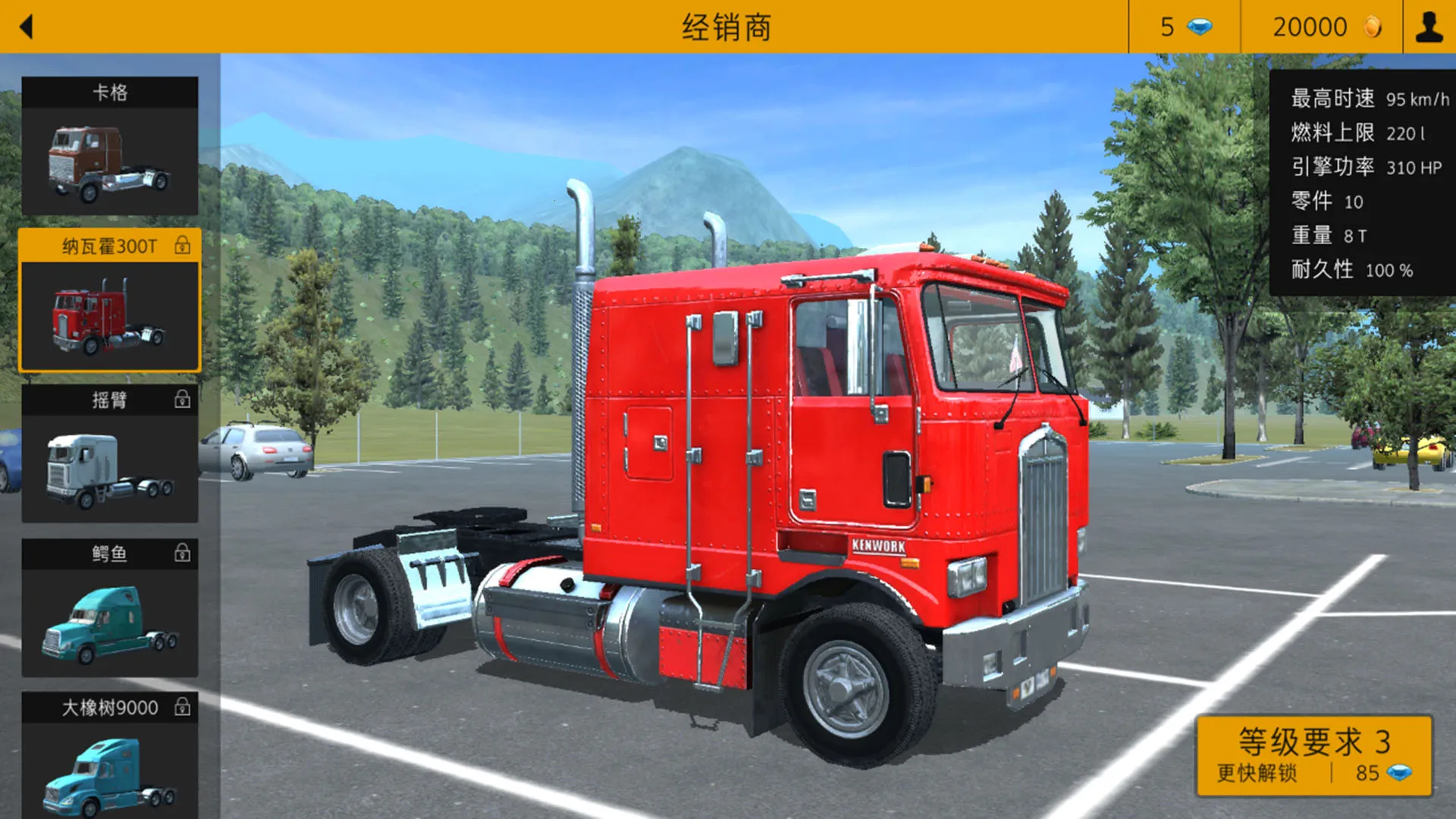 3、多样玩法:提供三种不同模式操控卡车,如左右按钮、方向盘或是重力平衡感应。有一系列运输任务,玩家可积累财富发展公司,还能完成各种运输任务赚取金币购买大型卡车。