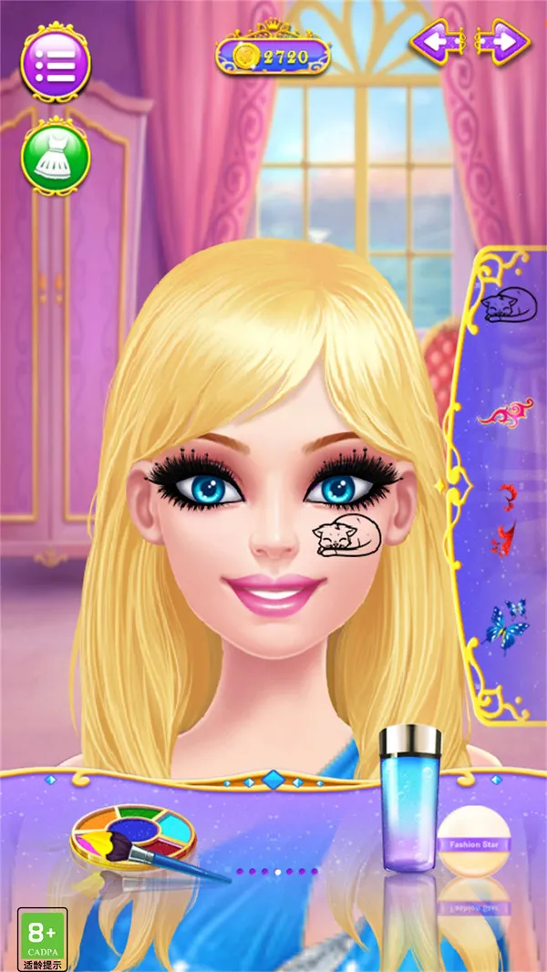 公主化妆游戏是适合女孩的化妆穿搭游戏。游戏里,孩子们能选喜欢的公主,清洁护理面部头发、设计发型,还可定制整体造型、选宠物。能随心设计时尚造型,玩法丰富,可开发想象力与动手能力。
