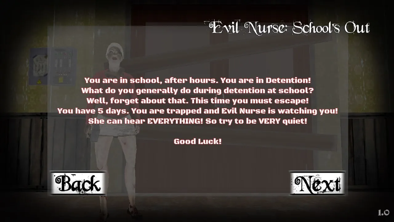 《邪恶护士:放学后(鬼屋逃脱游)》是一款恐怖冒险游戏。玩法经典,操作简单,控制角色行动,别触发机关就行。玩家要在医院里找到6个邪恶的十字架,从不同角度挑战完成任务。游戏中,玩家需前往不同地方找逃离出口,会面临各种恐怖考验。还有疯狂的邪恶护士四处追杀,要通过解决难题找逃离学校的办法,躲起来不被发现,注意别发出噪音。该游戏优势明显,画质高清,会有突发状况考验心理素质;房子里藏有大量道具,触摸屏幕控制人物找线索;画面逼真,恐怖音效到位,虽美术处理不细节,但斑驳工笔提升了恐怖氛围。