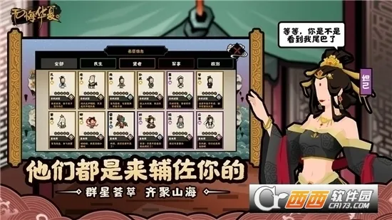 4、名臣武将助力:众多名臣武将可供重用,如姜子牙、鬼谷子等,他们各有才能和技能,合理搭配能大幅提升国力,助玩家横扫六合。