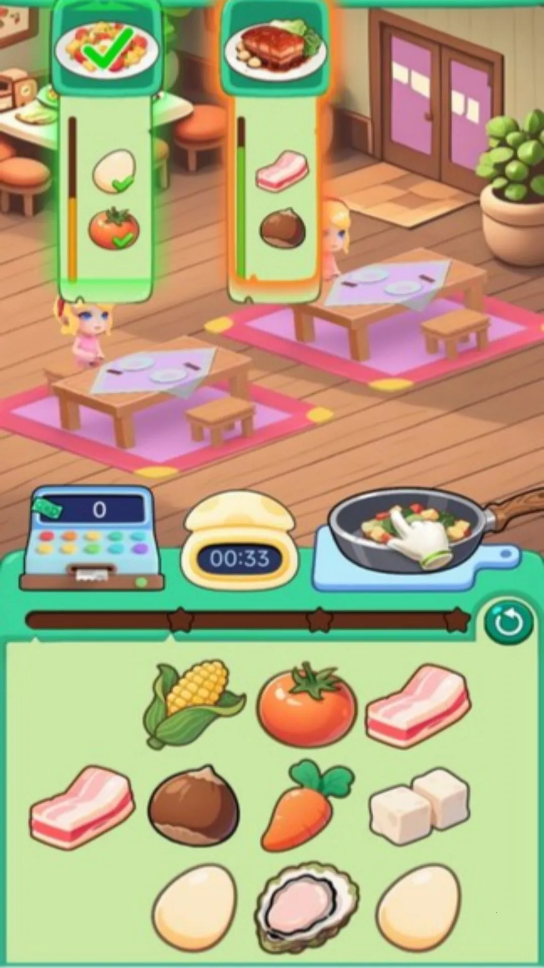 3、碎片化游玩优势:可以利用碎片化时间开启短局游玩,无需连贯投入,在零散时段享受轻松经营,逐步提升餐厅服务效率,比如利用通勤等短时段挑战低难度关卡。