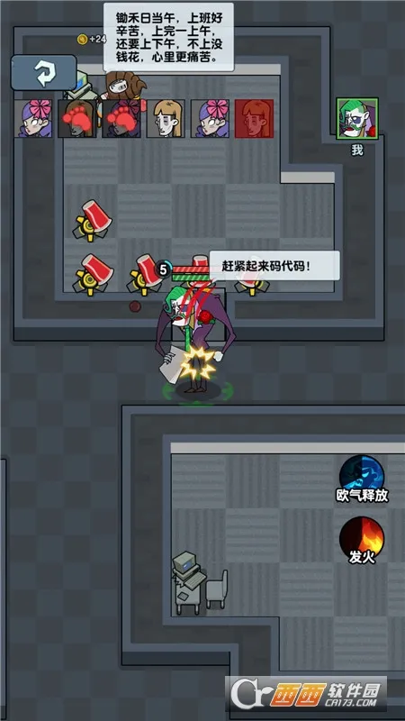 《躺平打工人》是一款类似猛鬼宿舍的躺平塔防游戏。玩家在办公室格子间开启生存较量,要躲避老板巡查,布置防御工事抵挡压力。游戏中成功摸鱼可积累金币升级防御体系。操作门槛低、单局时间短,适合碎片时间体验,能缓解现实压力。有多样角色,各有独特技能,需灵活应对不同老板。关卡设计递进,有全新主题场景。金币可兑换高科技道具扭转战局,暗色调场景营造紧张氛围。多种独立模式带来不同策略体验,塔防机制易懂,新手易上手,强化防御、合理分配资源是关键。玩法简单有趣,适合各类型玩家。
