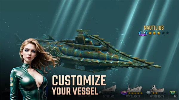 4、玩法丰富且有深度:有潜航追踪战术定位、鱼雷发射等操作,还能解锁并指挥多种大型战舰,每艘舰艇有独立升级路线,战斗系统模拟舰船受损状态,兼顾新手与硬核玩家需求,带来高度沉浸式的潜艇作战体验。