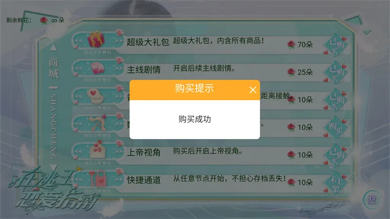 3、然后我们可以打开商城功能,本游戏已经成功解锁无限鲜花功能,你可以随意购买商城里的物品。