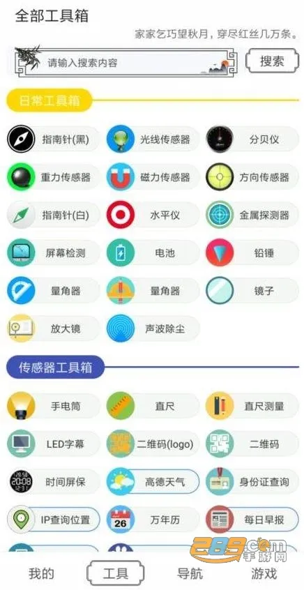 水墨工具箱是一款功能超丰富的手机综合工具箱App,能全方位满足日常各类需求。它有超多实用小工具,像指南针、分贝仪、金属探测器、放大镜、镜子、直尺等,还有文件管理器、系统清理、WiFi工具、备忘录、强光手电筒等。用户可按关键词或分类查询所需工具,没网络也能正常用。