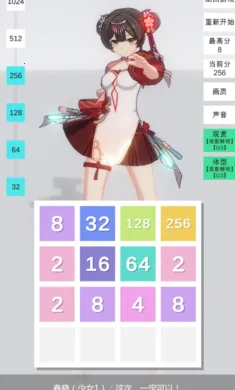 2048无限分镜安卓版是一款很有特色的游戏。它保留了经典2048数字合成玩法,玩家滑动屏幕合并相同数字方块来合成更大数字。在此基础上,融入了春晓元素,通过合成更高数字解锁海量分镜,提升与角色互动体验。游戏加入了3D二次元角色春晓,她会随玩家操作做出各种反应,如动作语音和视角变化。玩家还能自由调整角色的年龄和身材,打造个性化角色,享受高度自由的定制体验。操作简单易上手,能让玩家即刻畅享指尖触控的魔性快感。关卡丰富,带来多元化玩法,适合二次元爱好者和经典2048玩家,能带来全新且充满乐趣的游戏体验。
