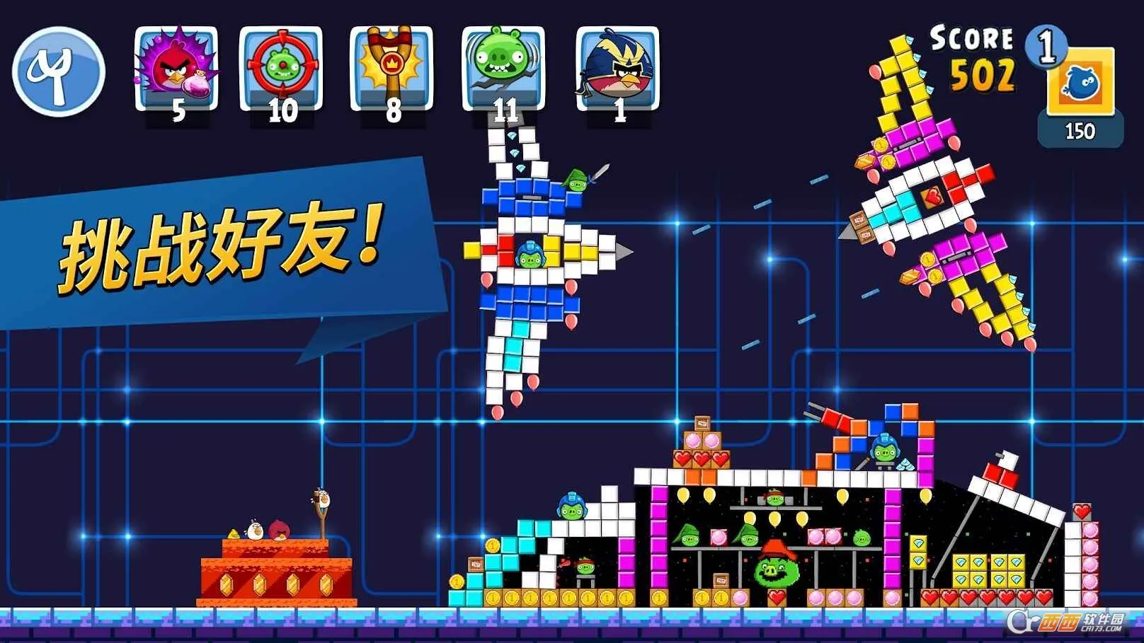 多种玩法乐趣足,不仅有经典的弹弓闯关,还新增了与朋友们竞争分数、争夺最高排名等玩法,竞技性和互动性十足。
